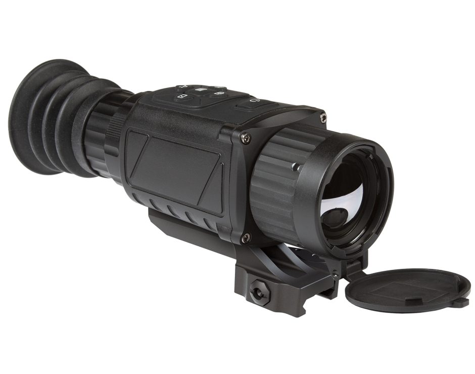 The Rattler TS25-384 is a perfect addition to any hunter's arsenal. Equipped with a 25mm germanium lens and a 384x288 resolution thermal sensor, this unit has a detection range of 880 yards, and a base magnification of 1.5X. This low base magnification allows for a wide field of view, which many hog hunters prefer, as it allows them to see and track multiple animals in a group at once. The Rattler series of thermal scopes were specifically designed to be compact and lightweight, as this not only ensures its small footprint can be used on a multitude of shooting platforms, but also gives the series secondary use as a thermal monocular as well.
