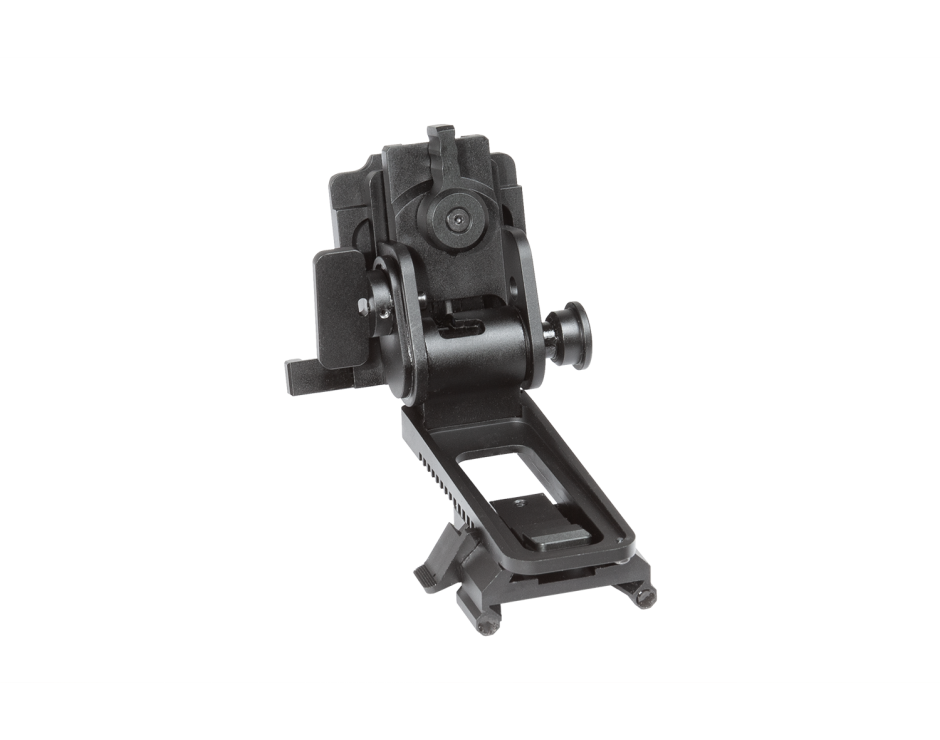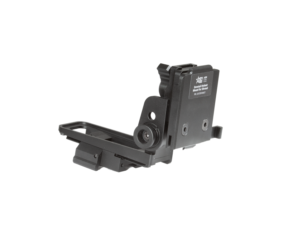 The AGM Dovetail Helmet Mount is designed to installation the various NVGs to the helmet with shroud. It is universal mounts because it does not require a special shroud. This mount features all adjust ability features to place NVG in proper position. Supports the safe disconnect feature that allow to adjust the mount for a secure lock with the shroud or to allow it to break away under stress so as to prevent injury.